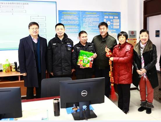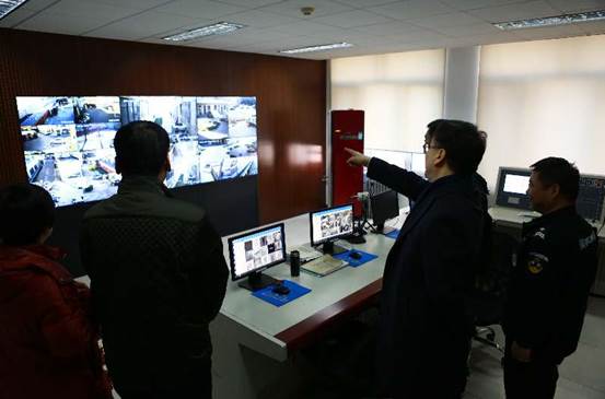 2月15日上午,校長褚宏啟等一行分別到皂君廟、白塔庵和西直門三個校區,檢查校園安全穩定工作并慰問值守人員,向他們致以節日問候和新春祝福。在皂君廟校區,褚校長向值班員張根喬老師了解有關情況,在中控室詳細調看了校園不同區域監控畫面,在白塔庵校區仔細詢問了保安人員的工作和生活情況,在西直門校區查看了變電室設備運行狀況,他勉勵大家堅守崗位、細致工作,同時感謝大家為學校平安保駕護航。