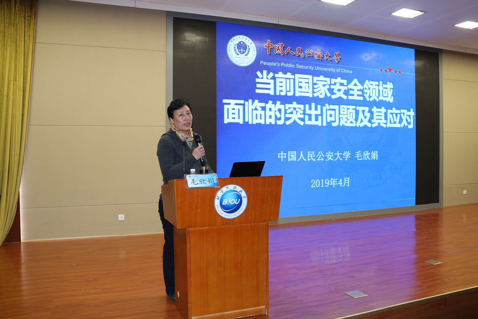 4月15日是我國第四個“全民國家安全教育日”,為深入貫徹習近平總書記總體國家安全觀的重要戰略思想,增強北京開放大學全體教職工國家安全意識,“北開大講堂第十講”特邀請中國人民公安大學博士生導師毛欣娟教授,為教職工做了題為“國家安全面臨的形勢與對策”的專題講座。北京開放大學全體教職工,認真聆聽了講座。講座由校黨委副書記邵長生主持。