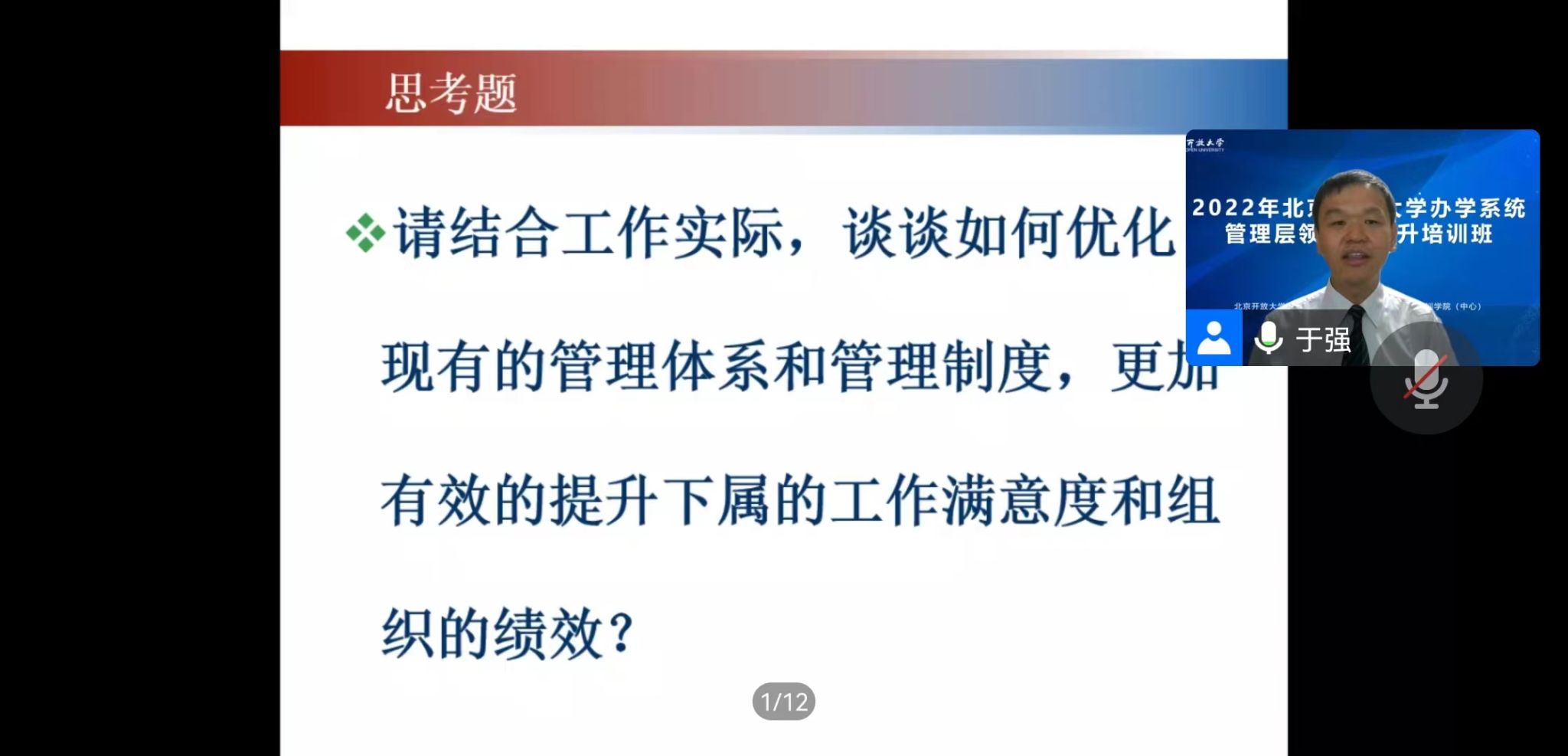 為全面落實教育部《關于辦好開放大學的意見》戰略部署,加強我校辦學系統建設,緊緊圍繞學校十四五規劃工作重點,培養一批專業化、高水平管理隊伍,奮力開創辦學系統建設新局面,學校于9月16日至29日,舉辦了辦學系統管理層領導力提升培訓。