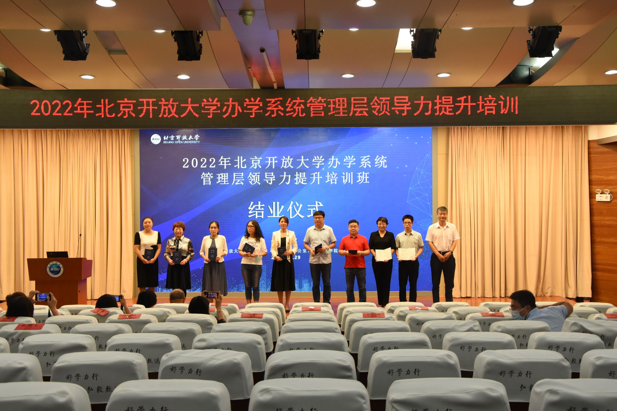 結業儀式上,各學習小組代表分別做了小組匯報。黨委委員、副校長王想年為學員代表頒發了結業證書。李繼延對各小組匯報做了點評,并就培訓做了總結性發言。他表示,此次培訓聚焦管理者領導力提升,課程內容實、專家水平高,培訓形式和學習形式多樣化,符合成人在職學習者的需求,更值得肯定的是學員們對市校發展積極建言獻策,凝心聚力共謀北京開放大學發展。
