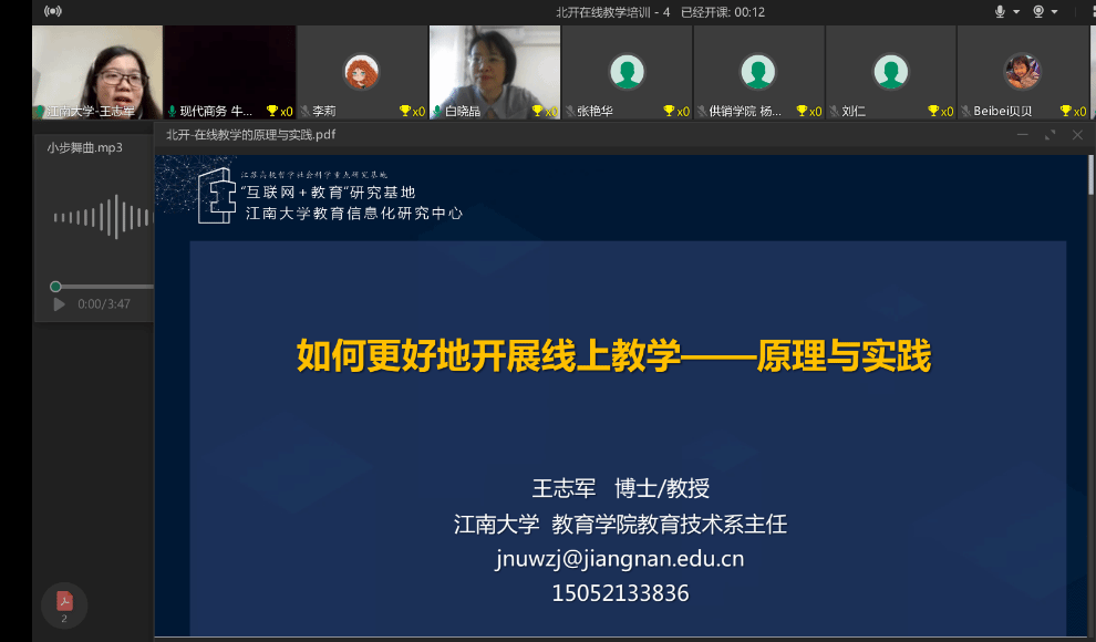 江南大學王志軍教授進行了主題為“如何更好地開展線上教學—原理與實踐案例”的培訓。在培訓中,她結合在線教學經驗、在線教學基本原理以及在線教學實際案例,讓大家體會到加強在線教學交互設計的重要性,以及教師需要增強教學設計能力服務學生學習成效的能力要求。