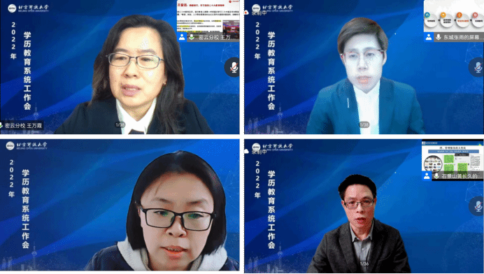 密云分校校長王萬霞、東城分校教學主任張雨、石景山分校副校長黃長久、中大學習中心主任王少華依次作了經驗交流。