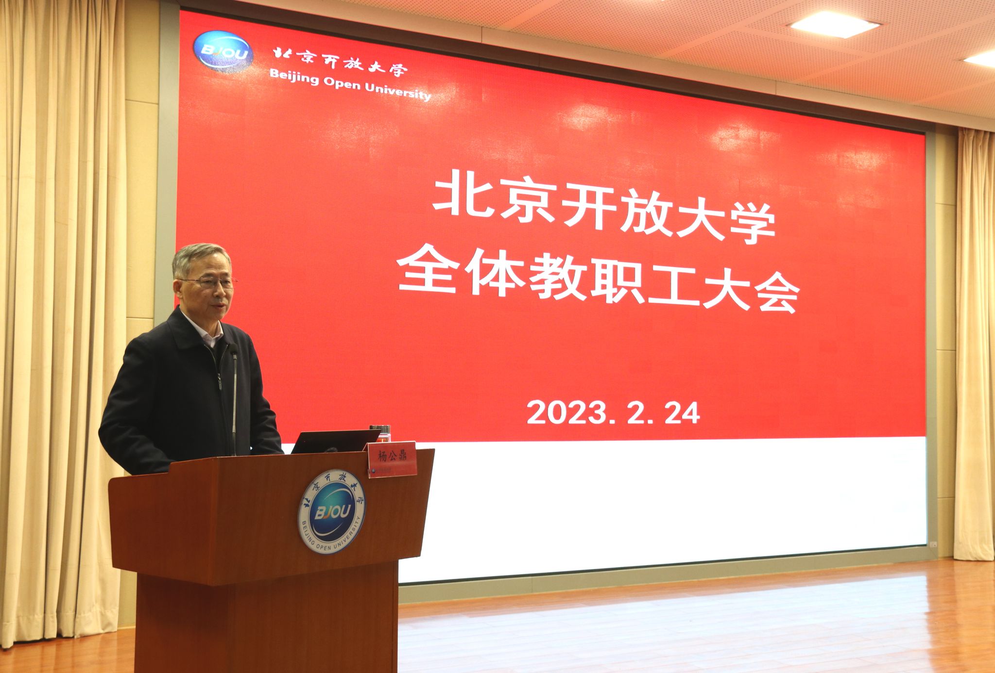 黨委書記楊公鼎在講話中指出,2022年是黨和國家歷史上極不平凡、極為重要的一年。在以習近平同志為核心的黨中央,北京市委、教育工委堅強領導下,學校黨委帶領廣大教職工,全力做好迎接學習宣傳貫徹黨的二十大各項工作,圍繞質量提升年工作主題,統籌事業發展和疫情防控,扎實推進學校高質量發展,各項工作都取得了新進展新成效。