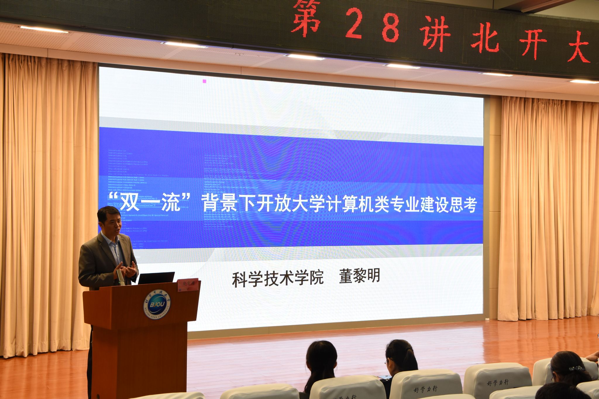科學技術學院教授董黎明做了題為“‘雙一流’背景下開放大學計算機類專業建設思考”的專題發言,他通過立足軟件技術專業建設的工作全景,針對如何將計算機類專業和課程建出特色進行交流分享,分享了專業建設路線的思考探索與工作設想。