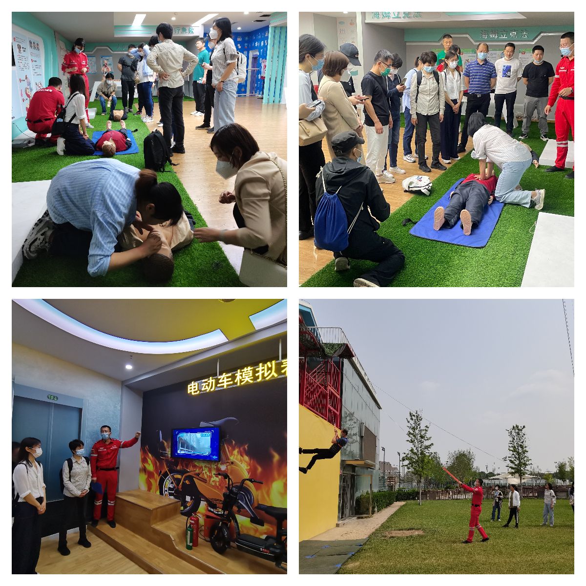 基地工作人員詳細介紹了應急安全教育基地基本情況,并為教職工播放了應急安全科普視頻,工作人員還認真細致地為參加活動的教職工講解了地震求生、毒品危害、食品安全、用電安全、消防安全等方面的安全知識。在互動體驗環節,教職工體驗了模擬防踩踏訓練、模擬火場逃生、模擬場景滅火、心肺復蘇急救等項目。