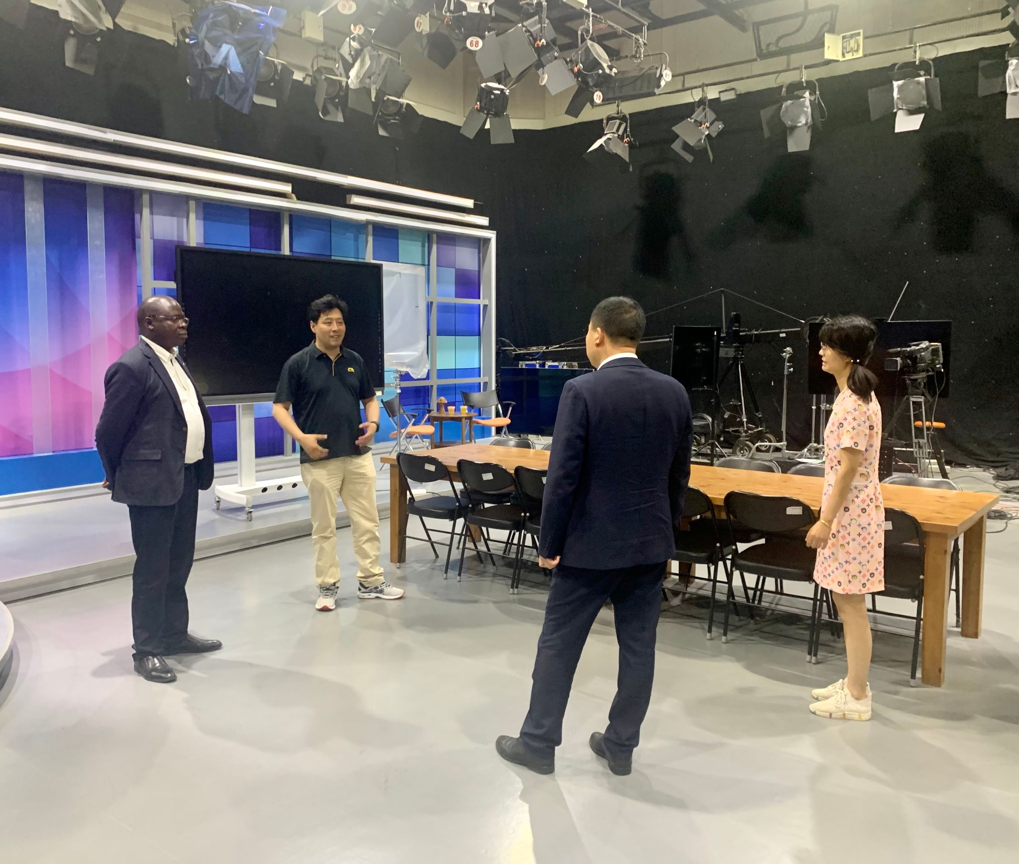 座談會后,學校數字資源中心工作人員陪同外賓參觀了演播室、圖書館。
