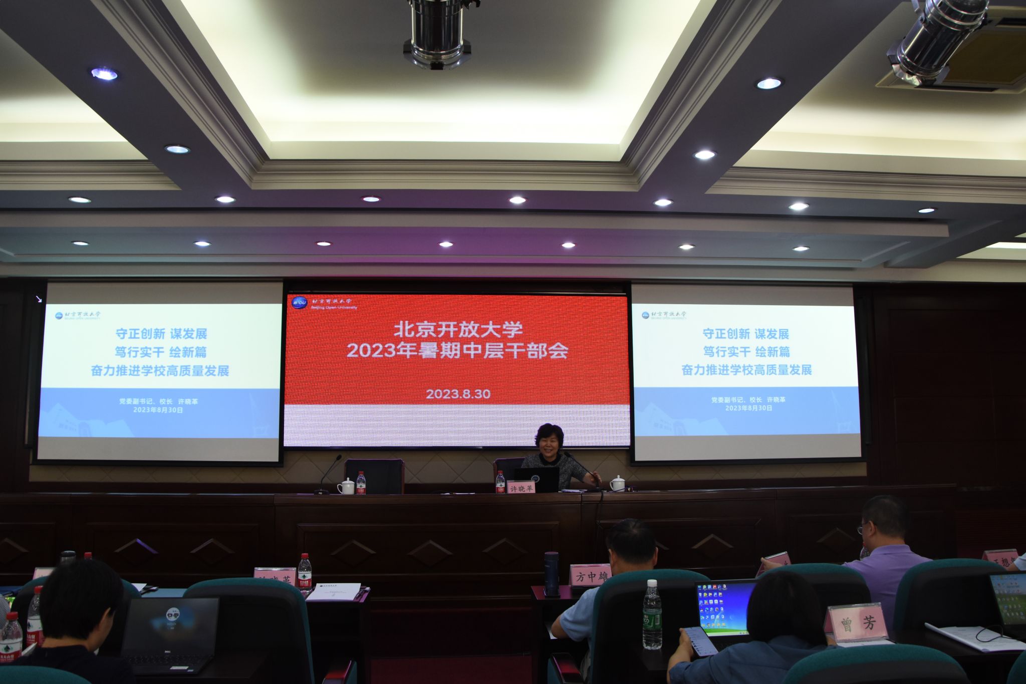 許曉革指出,上半年在黨委堅強領導下,學校聚焦主題主線,突出重點任務,以高質量黨建引領事業高質量發展,在學歷與非學歷教育教學、學分銀行與信息化建設、教師干部隊伍建設、學校內部治理等方面的重點任務都按照年初既定的工作目標穩步推進并取得實效。暑假期間,全體干部和教職工主動扛起責任擔當,保證重點工作不斷線,持續推動主題教育走實走深,高質量推進兩委換屆工作,高標準做好迎接國開辦學評估各項工作,持續推進北京市中小學幼兒園“全程超前伴隨式”家長培訓項目,有序開展接訴即辦、招生宣傳和校園改造等工作。
