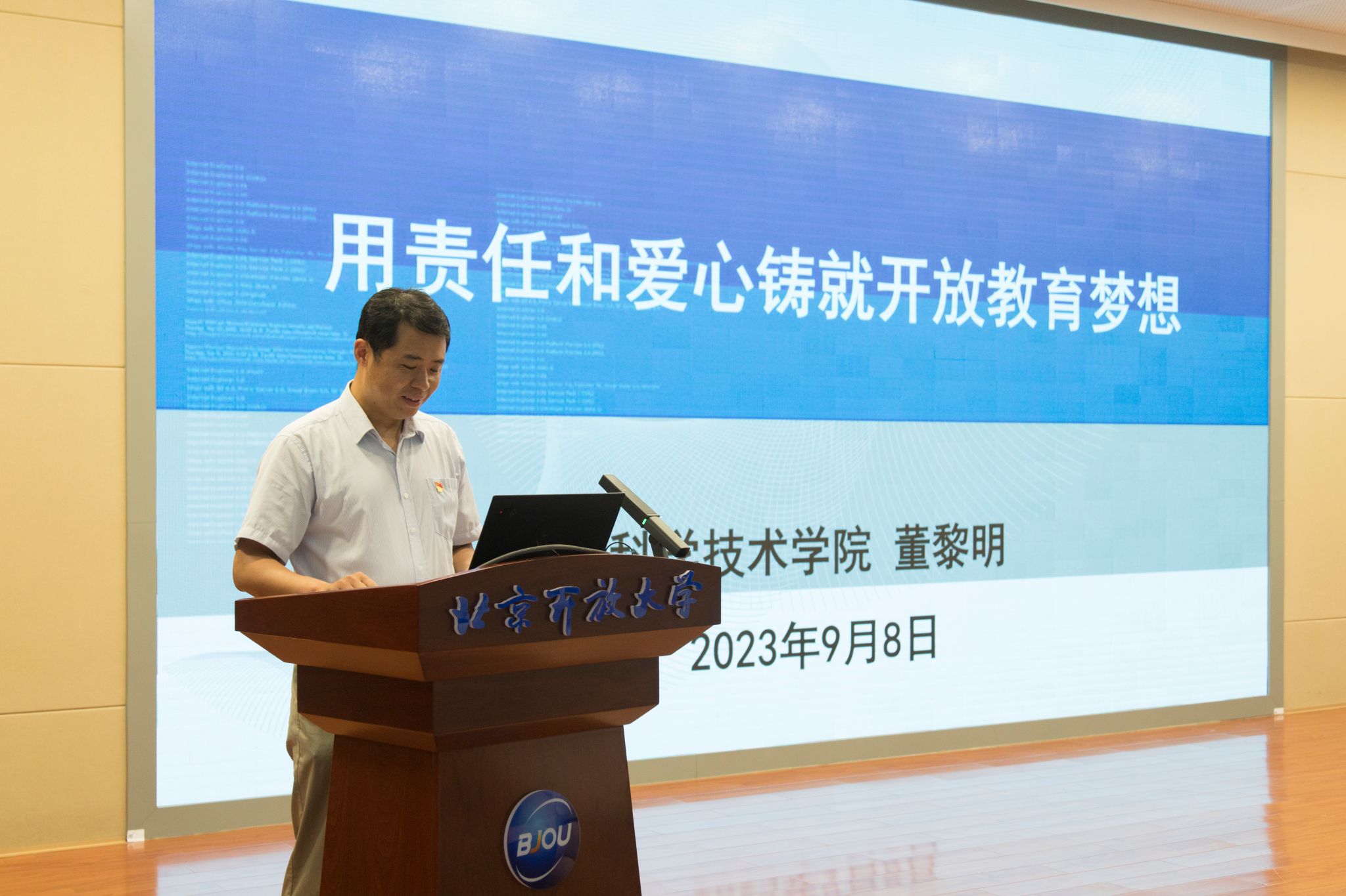 科學技術學院教師董黎明以“用責任和愛心鑄就開放教育夢想”為題,分享了發生在自己身邊的點滴故事。樸實平凡瞬間所映射出的是傾注責任與愛心關心每一個學生,體現了教師對學生的關心、對教育事業的熱愛、對社會責任的擔當,是優秀師德的生動呈現。