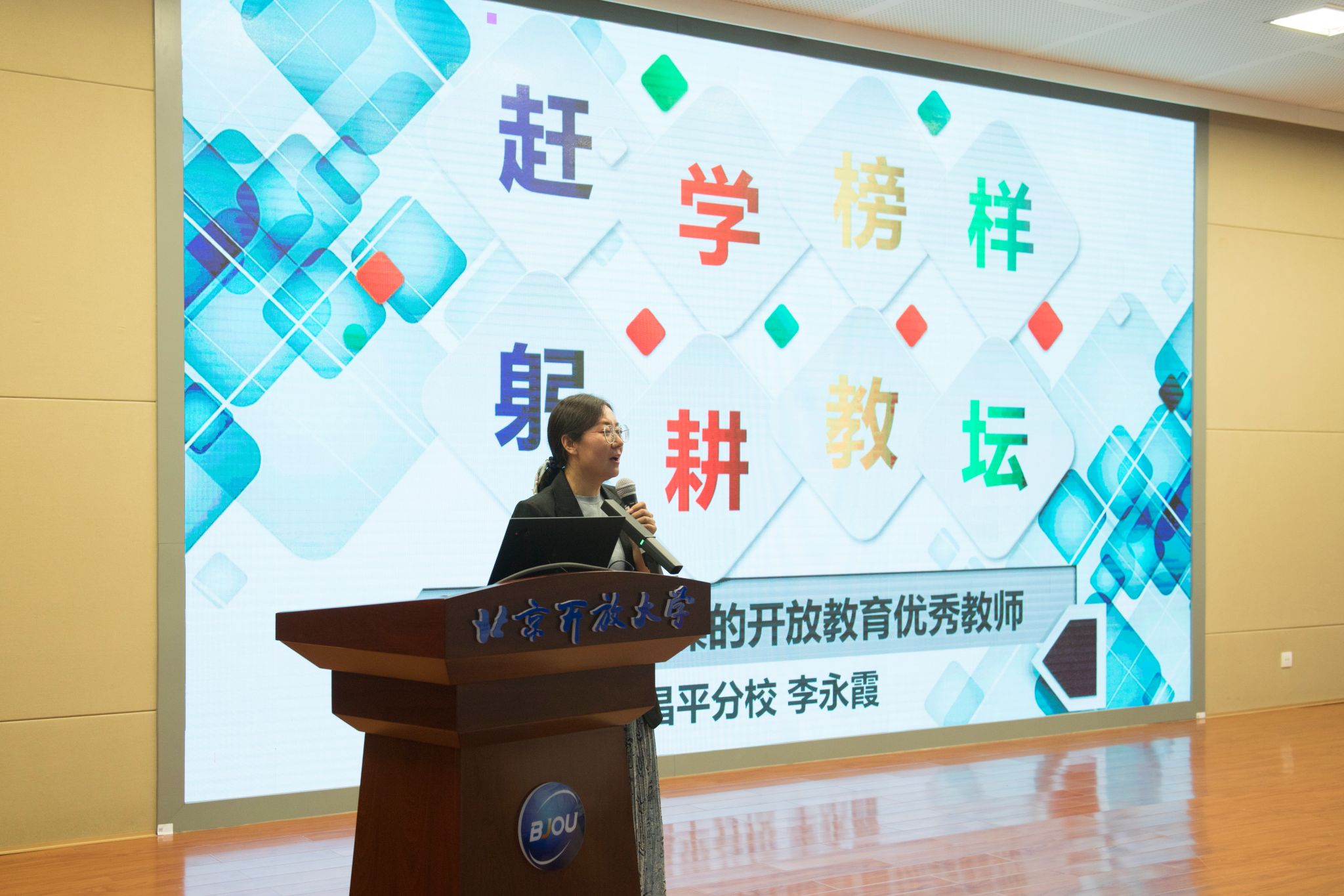 昌平分校教師李永霞以“崇德修身,趕學榜樣,做有職業情操的開放教育優秀教師”為題,分享全身心投入教學工作、從學生需求出發為其學習提供支持保障,以及發揮開放教育工作者優勢踐行社會服務的經驗與感悟。