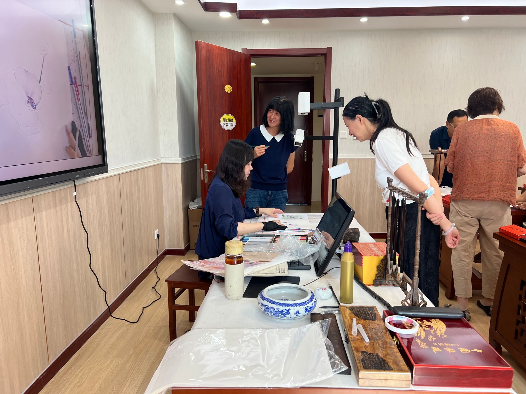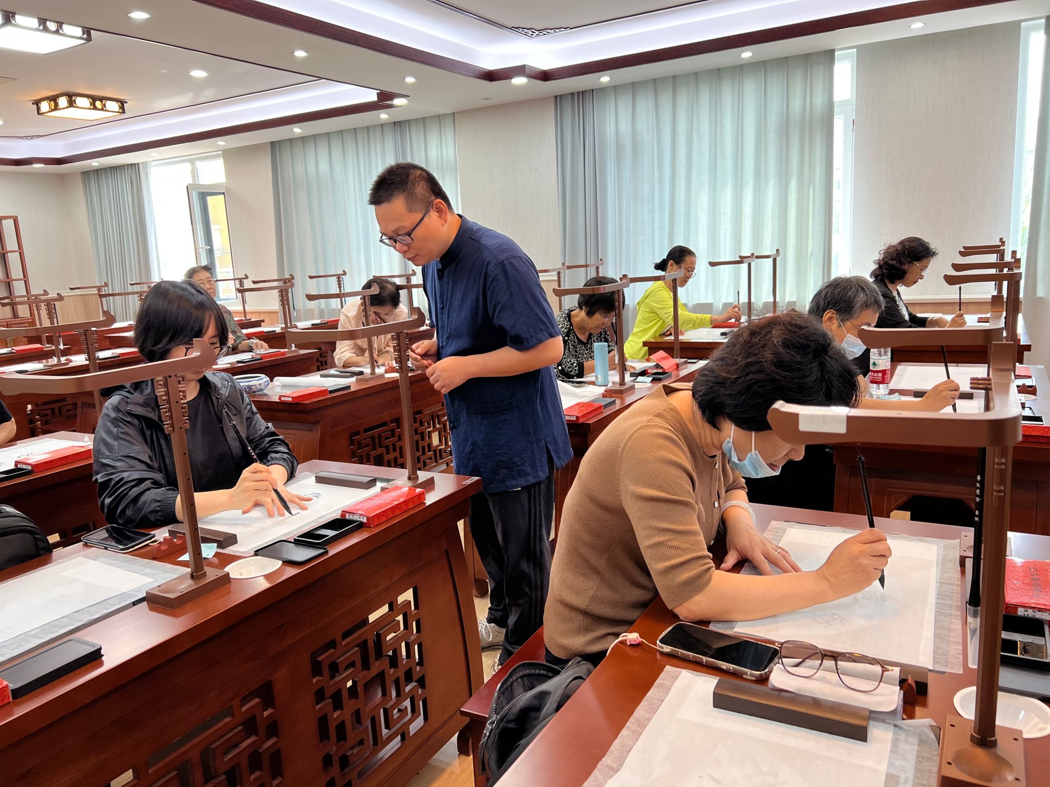 100多名學員走進西直門校區,觀看北京市老年教育文化藝術節展覽,體驗現代化的智慧書畫教室和專業的形體教室。本次“校園開放日”活動共開設了書法(楷書)、書法(隸書)、彩鉛畫、模特、民族民間舞和古典舞六門體驗課程。老師們聚焦如何跳好一只舞、如何寫好一個字、如何畫好一幅畫、如何走好一次模特秀等,為學員深入講解學習技巧和重難點,講授內容專業、易懂、易學,深受學員的喜愛。老年大學老師們介紹了北京老年開放大學的基本情況、特色活動以及招生政策,并進行了現場交流,為學員答疑解惑。