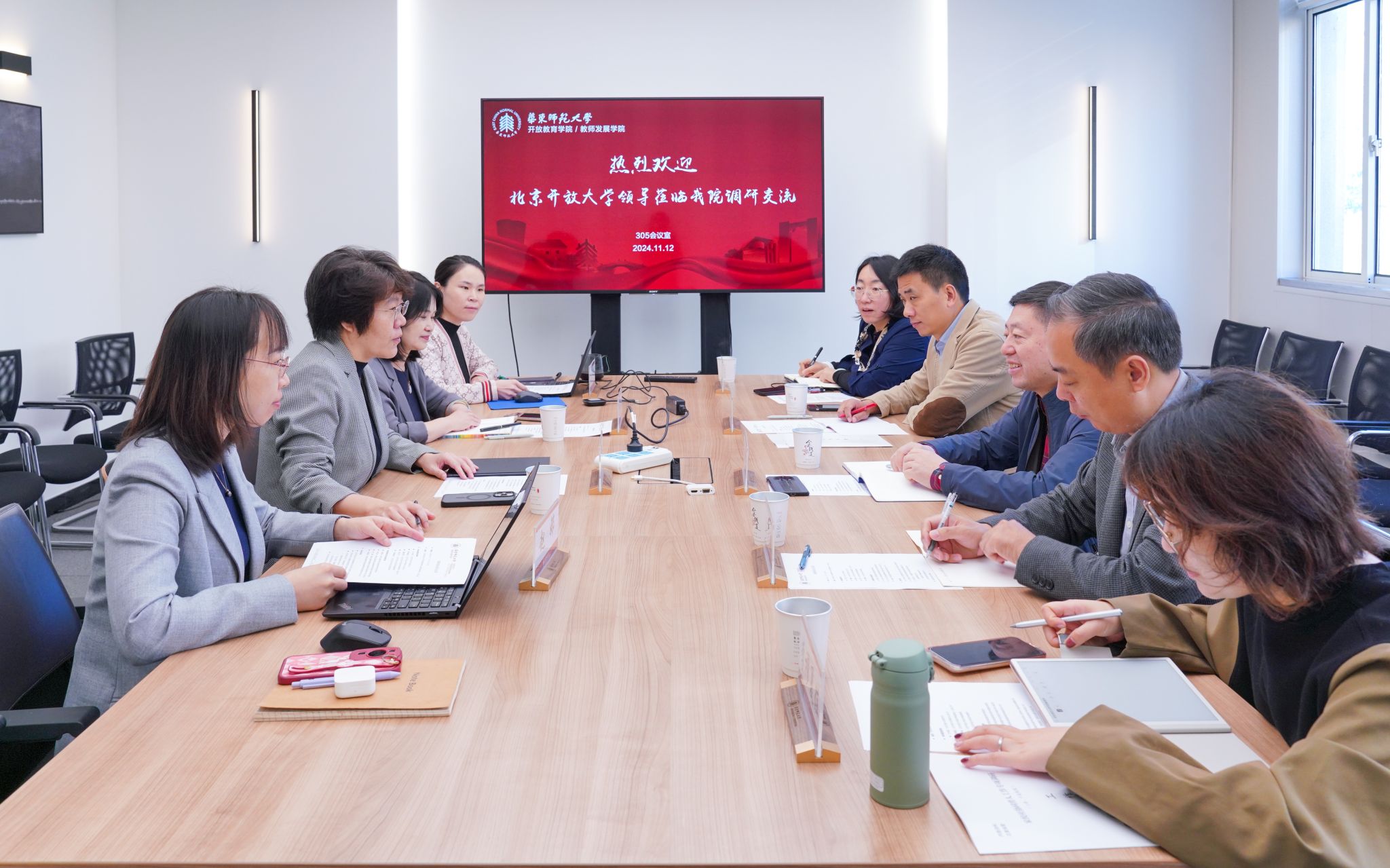 調研團一行對華東師范大學終身教育研究院、開放教育研究院的家校社共育理論研究和實踐模式、家庭教育“微專業”建設等進行了解,對“AI時代家長學?!?、“知心慧語”智能陪練系統等展開深入交流。在上海開放大學,圍繞“上海家長學?!?5 分鐘家庭教育服務圈建設深入研討。