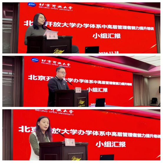 兩天時間里,學員們認真聆聽專家的精彩報告,圍繞從全國教育大會精神談開放教育發展,如何成為一個好的管理者,數字化時代對開放教育發展的思考等問題展開討論,分享心得體會,為開放教育發展建言獻策,充分展現了開放大學管理者的良好形象。順義分校黨支部書記、常務副校長田杰,平谷分校副校長趙國玲,昌平分校副校長郭鵬飛分別代表三個討論組,分享了本組關于如何提升管理能力,推動數字時代開放教育發展的經驗和思考。
