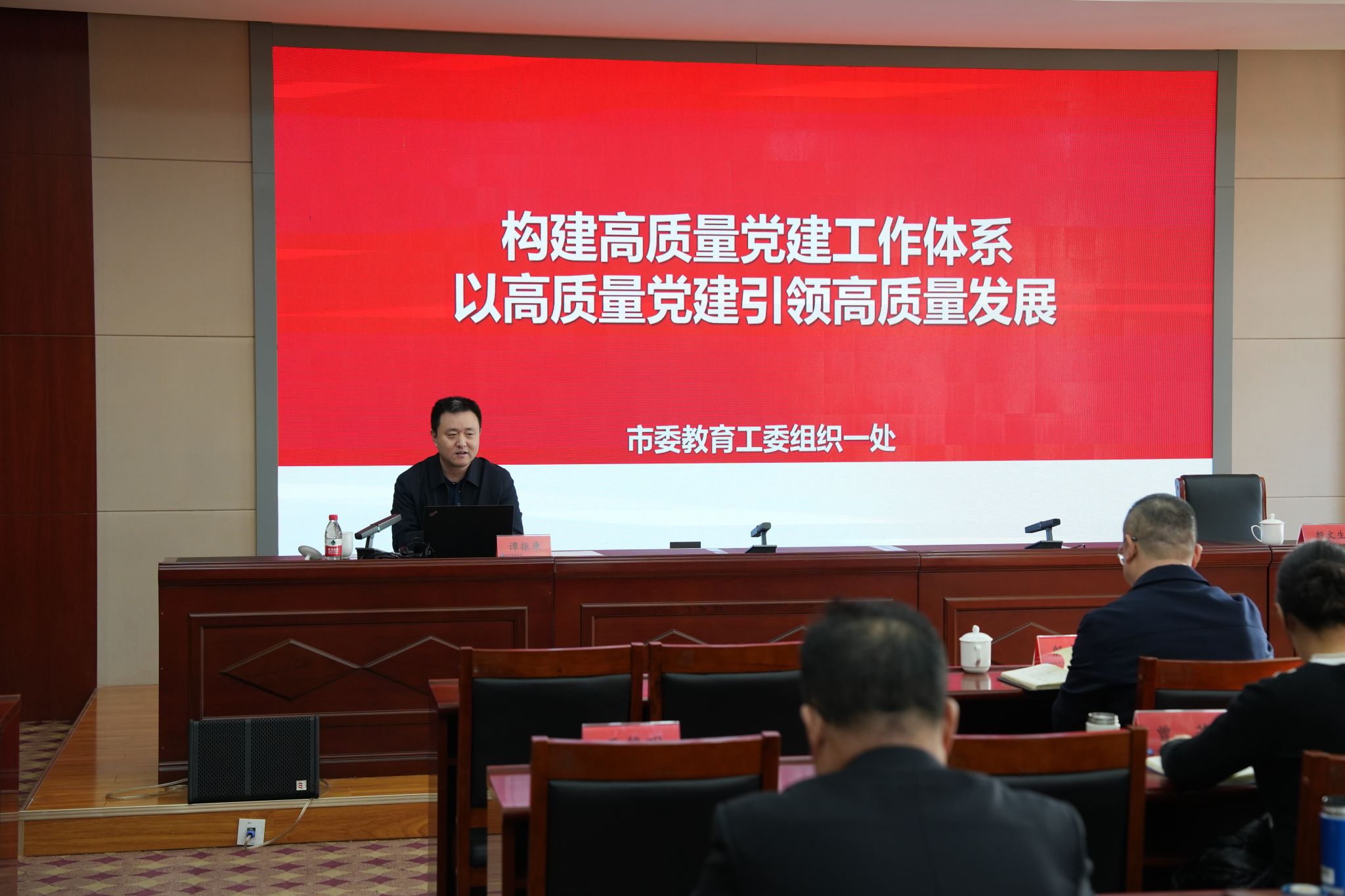 譚振康圍繞“高質量黨建引領高質量發展”這一主題,從北京高校黨的建設總體情況、如何以高質量黨建引領高質量發展、當前高校黨建新任務等方面作專題輔導,系統梳理了黨中央和習近平總書記對高校黨建工作提出的指示要求,從為什么黨建引領、什么是黨建引領、怎么抓黨建引領三個方面具體闡述了以高質量黨建引領高質量發展的方法路徑,提出了下一步北京高校黨建工作重點任務和思路舉措,為加強學校黨的建設提供了具體指導。