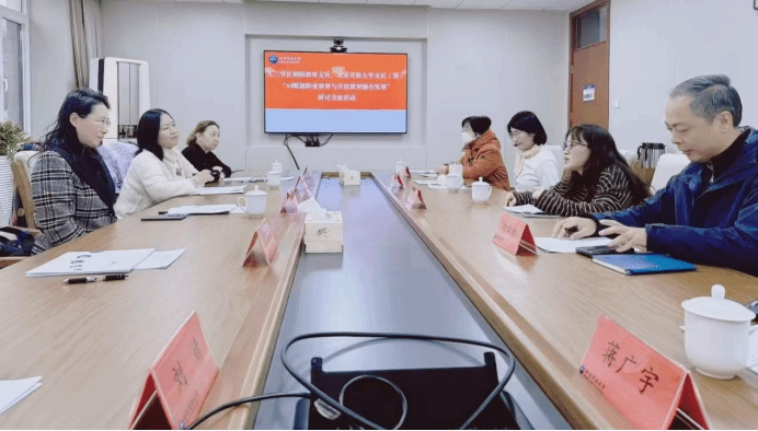 交流研討階段,雙方圍繞“AI賦能職業教育與開放教育融合發展”主題展開熱烈討論。培訓學院副院長魏學智介紹了培訓學院在職業培訓、教師教育、國際教育、家校社協同育人等領域業務開展情況;程云艷教授表示,AI賦能職業教育與開放教育在優化專業布局、重構課程體系、創新人才培養模式等方面要互相優勢互補持續發力,深入推動人工智能賦能職業教育與開放教育融合發展與變革,實現職業教育與開放教育的雙向賦能。