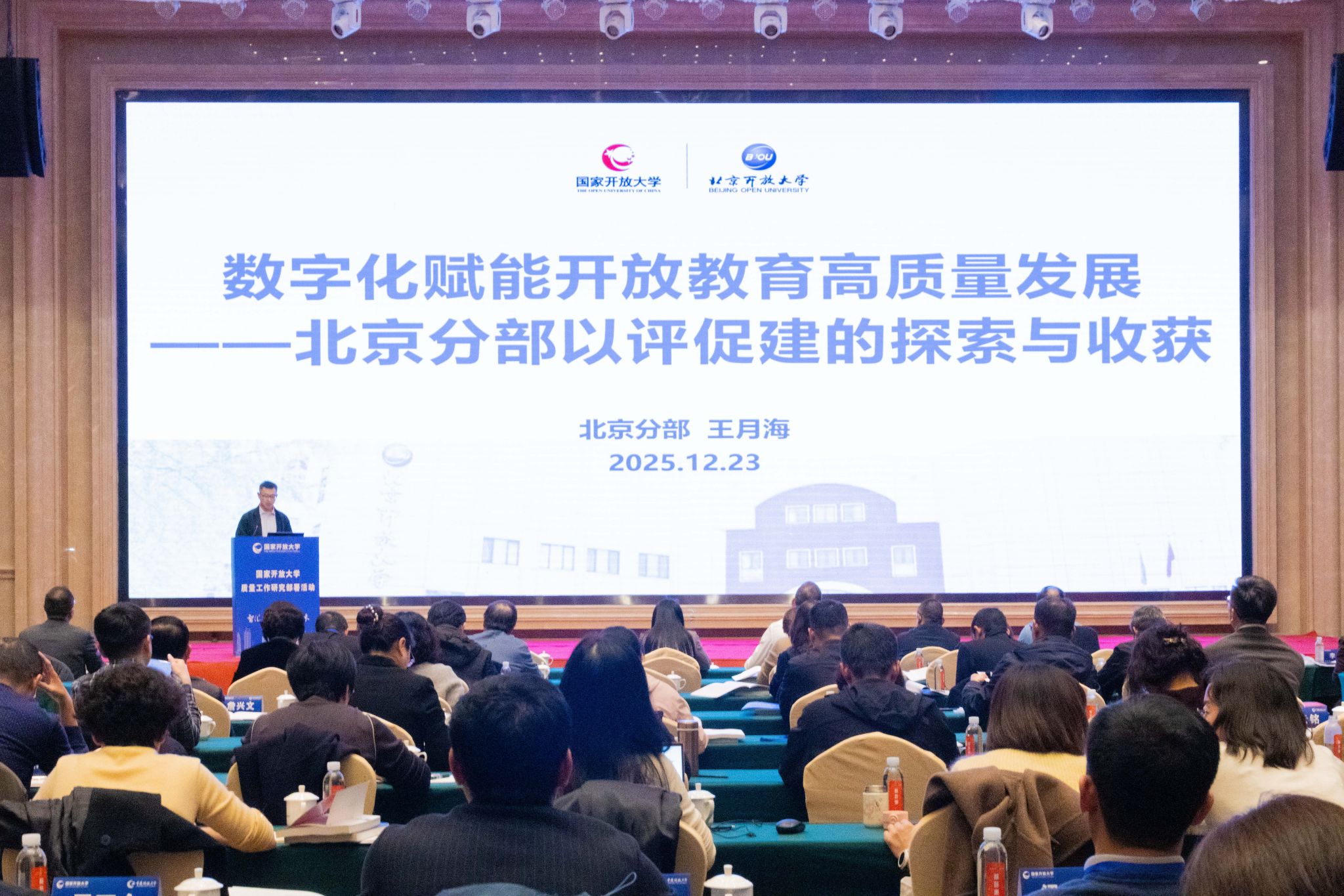 國家開放大學黨委委員、副校長李松出席活動,教育部職成司高等繼續教育處副處長徐璐、教育質量評估中心副主任張勇作工作指導。本次活動以推動開放大學體系高質量發展為主題,深入學習貫徹黨的二十屆四中全會和全國教育大會精神,落實《教育強國建設規劃綱要(2024—2035年)》和三年行動計劃,圍繞“總結首輪分部辦學評估成效、部署第二輪評估工作、交流以評促建經驗”等內容,緊扣開放教育質量建設核心議題,旨在以監測評價為牽引,驅動開放教育辦學體系提質增效,統籌謀劃國家開放大學未來五年質量工作。