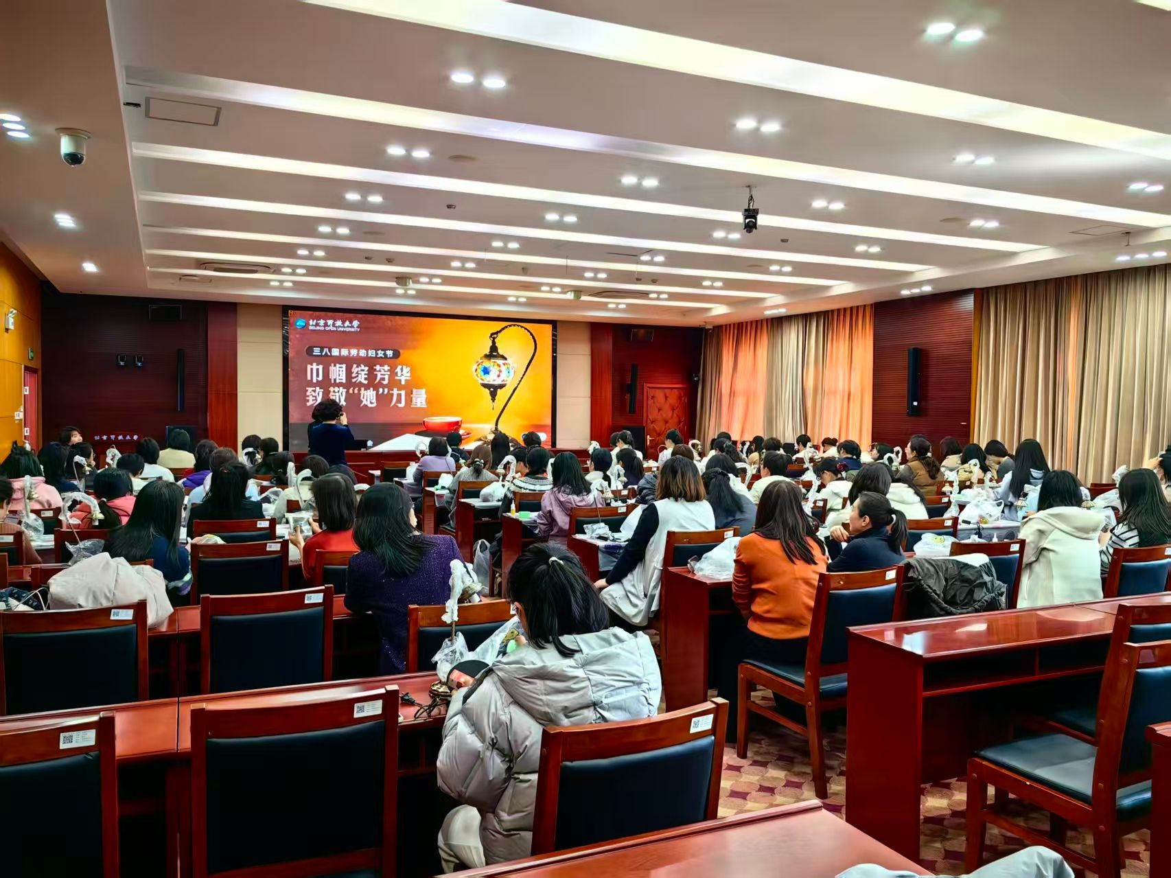 在三八國際勞動婦女節到來之際,北京開放大學工會女職工委員會于學校國際報告廳精心舉辦 “巾幗綻芳華,致敬‘她’力量” 馬賽克燈手工制作主題活動,為全校女職工送上節日的美好祝福與暖心陪伴。