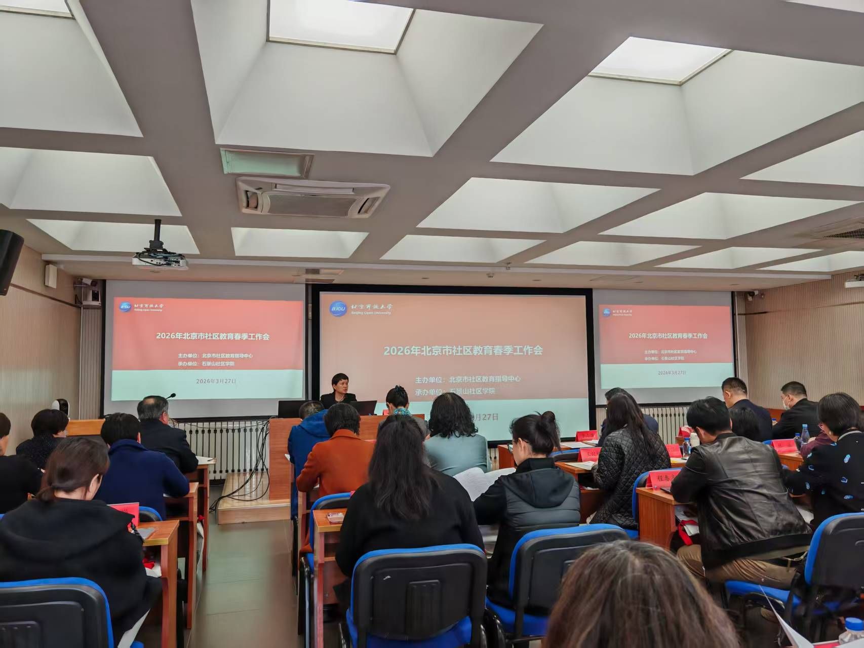 3月27日,2026年北京市社區教育春季工作會順利召開。會議以“提升終身學習服務品質,共繪首都社區教育新圖景”為主題,我市17家指導分中心到會,海淀區教委、各區社區學院、成人教育中心、普通高校以及高職、中職院校、街道社區相關單位負責人50余人參會。會議由北京開放大學終身教育處副處長李繼梅主持。