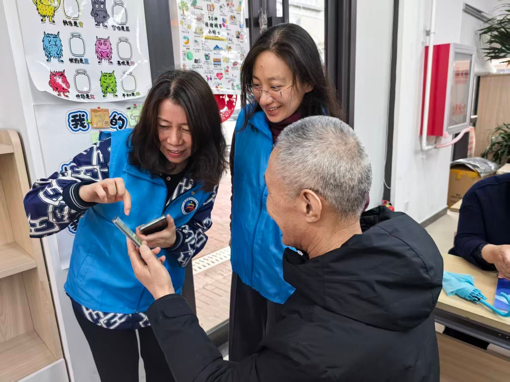 市教委職成處黨支部的黨員現場開展了志愿服務,就課堂講授內容手把手教老年學員操作,并與授課老師和學員們進行了深入交流。他們仔細詢問課程設置的合理性、教學方法的有效性以及學員們的反饋情況。學員們紛紛表示,這樣的課程非常實用,貼合他們的生活需求,讓他們在晚年能夠緊跟時代步伐,享受科技帶來的便利。