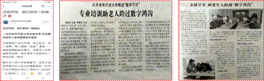 2020年11月下旬以來,多家媒體先后登載或轉發《北京老年開放大學多措并舉解決老年人運用智能技術困難》、《多措并舉 助老年人跨越“數字鴻溝”》、《這些鴻溝,我們陪您一起跨過!》和《北京老年開放大學推進“教學下沉” 專業培訓助老人跨過數字鴻溝》等文章,這些文章都涉及到一個共同的名字——北京老年開放大學。
