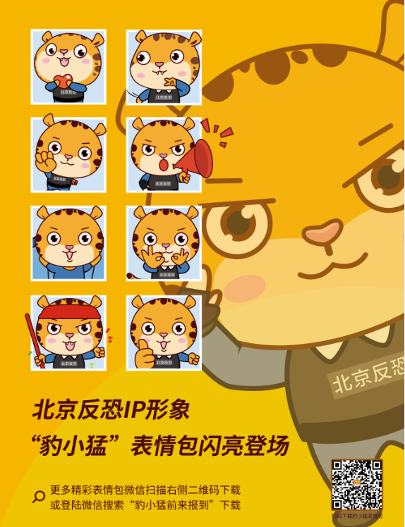 據悉,北京市防恐IP形象“豹小猛”近日上線,可以通過動漫及表情包的傳播形式,讓大家在碎片化的時間獲得反恐常識和自救方法,提高反恐意識,營造全民反恐大格局。