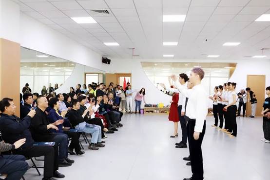 委員們參觀了學院小劇場及舞蹈、聲樂、形體教室等基礎設施,觀賞了同學們精彩的匯報演出,與全院師生同唱了《沒有共產黨就沒有新中國》、《我和我的祖國》,祝福建黨百年華誕,祝福祖國繁榮昌盛。