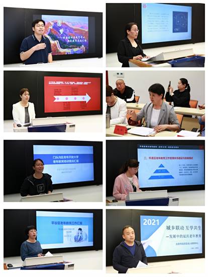 各區老年開放大學校長以鮮活的實踐案例,分享了各自在發展老年教育中取得的成績、經驗和思考。北京老年開放大學負責人圍繞北京老年開放大學的工作職能定位、工作進展進行主題發言,并結合“智慧助老”等專項行動計劃介紹了2021年的工作設想。隨后與會人員圍繞全市老年教育的歷史與現狀、存在的主要問題、未來發展建議等方面進行了深入的交流。
