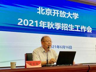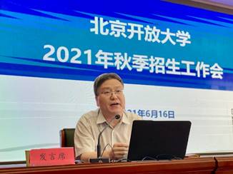 6月16日上午,北京開放大學召開2021年秋季招生工作會,北京開放大學辦學體系53家教學單位主管招生校領導、招生主管、招生工作人員共計100余人參加了本次會議。黨委副書記、校長褚宏啟、副校長李繼延出席會議并講話,會議由事業發展部(系統建設辦公室)主任李海英主持。
