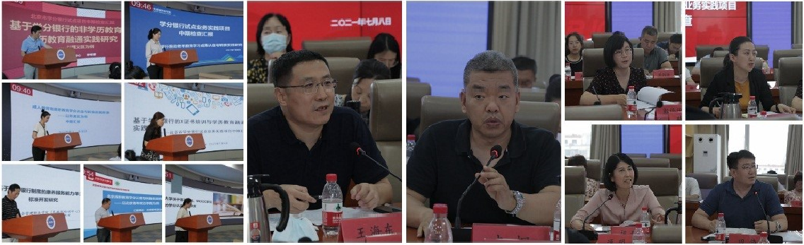 順義、石景山、懷柔3家學分銀行管理分中心和北京信息職業技術學院、北京社會管理職業學院、北京青年政治學院、北京開放大學4家學分銀行聯盟成員單位作為實踐項目試點單位代表,分別匯報了試點實踐項目的工作進展、階段性成果、存在的問題和下一步工作計劃。