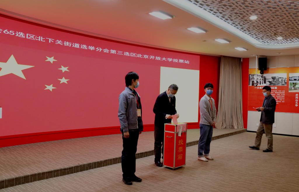 11月5日,按照北京市海淀區第十七屆人民代表大會代表換屆選舉工作的統一部署安排,我校在皂君廟校區舉行了海淀區選舉委員會65選區(北下關街道分會第三選區)北京開放大學投票站選舉投票工作,共涉及我校選民330人。