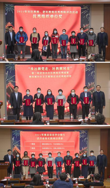 會上,還對“永遠跟黨走、社交展風采”第三屆北京市社區教育優秀成果暨首都社區文藝展演活動、2021年社區教育和老年教育優秀教師評選活動優秀組織單位,以及2021年度北京市學分銀行試點業務實踐項目進行了表彰。