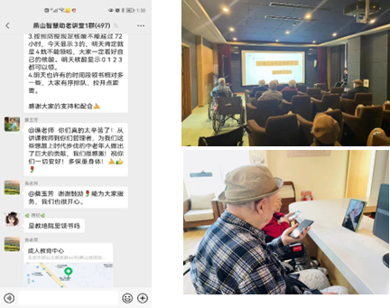 針對老年公交卡與健康寶關聯升級困難、影響老年人正常乘車的問題,北京老年開放大學聯合華為科技有限公司、鏈家公益基金等單位,通過微信群、視頻直播等形式,組織教師及志愿者為燕山地區、順義老年大學等開展線上智慧助老活動,講解公交卡升級、健康寶核酸檢測查詢以及網上買菜、掛號、生活繳費等實用內容,服務老年學習者。