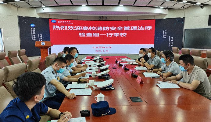 檢查組分檔案查驗、二級單位檢查、重點部位、家屬院和公寓、消防控制中心、綜合組等6個小組,對學校的法律法規執行、學校規章規范性文件制定、消防現場拉動、消防設施設備使用、中控室、微型消防站建設等進行了全面檢查。檢查組王維組長對學校的消防管理工作給予了充分肯定,對學校工作規范,迎檢準備工作到位給予了高度評價。王維組長表示:北京開放大學可以作為海淀區高等學校消防管理樣板單位,把相關工作經驗在全區高校進行推廣。