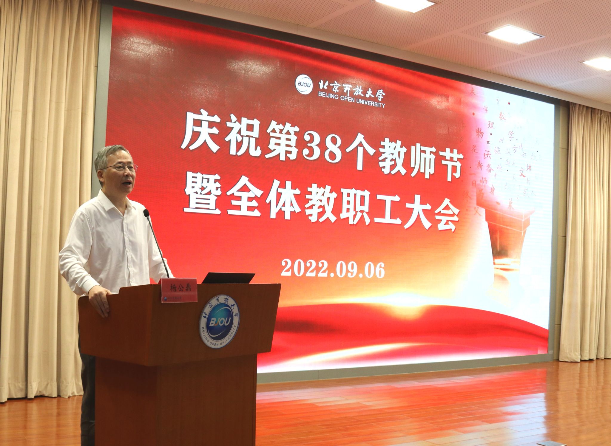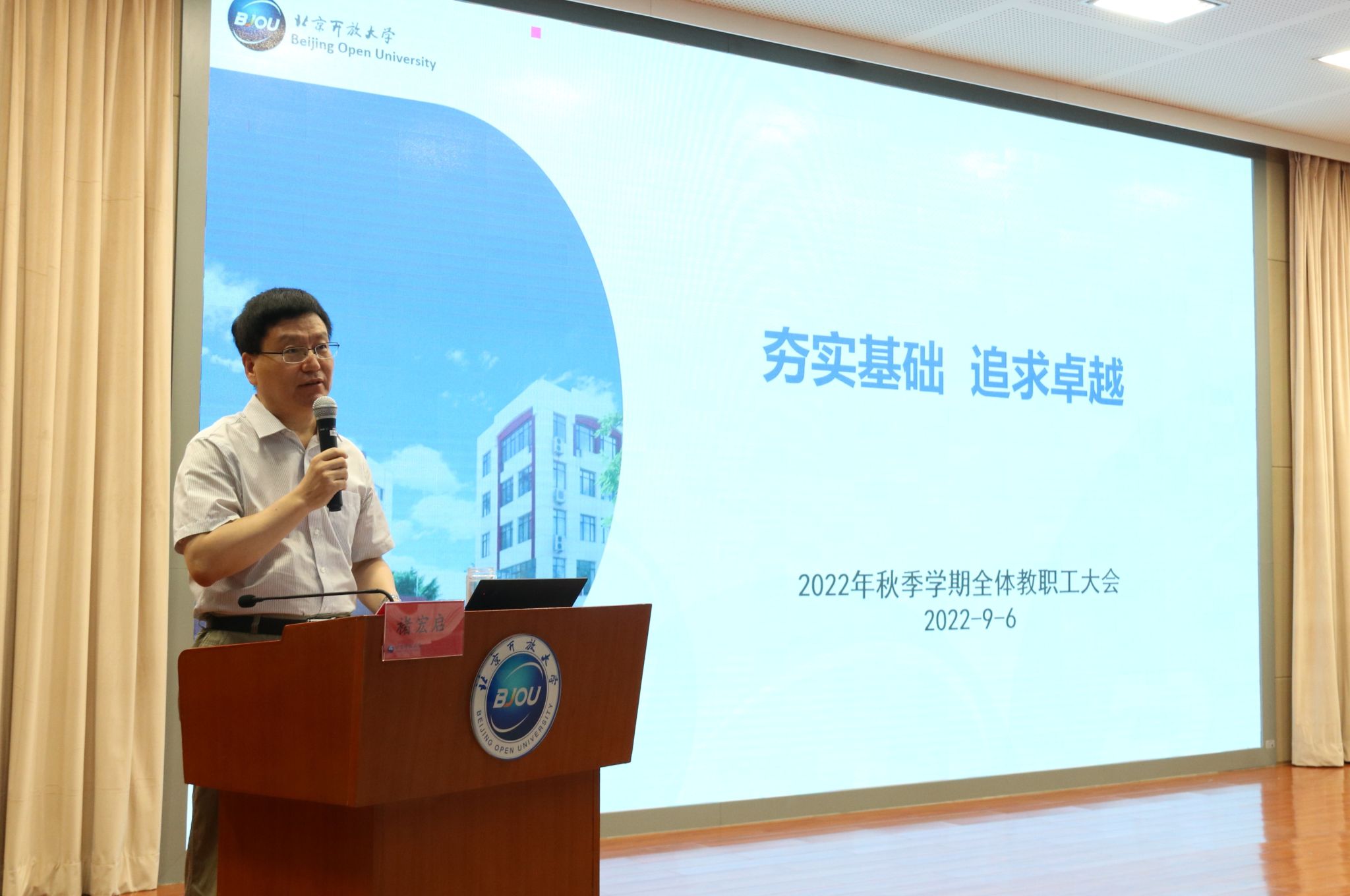 9月6日上午,學校召開2022年秋季學期全體教職工大會,會議由校黨委副書記、校長褚宏啟主持。本次大會的主題是堅持以習近平新時代中國特色社會主義思想為指導,深入學習貫徹落實北京市第十三次黨代會和北京高校暑期工作會議精神,進一步統一思想、明確任務、振奮精神、激發干勁,奮力推進首都開放教育高質量發展,以實際行動迎接黨的二十大勝利召開。