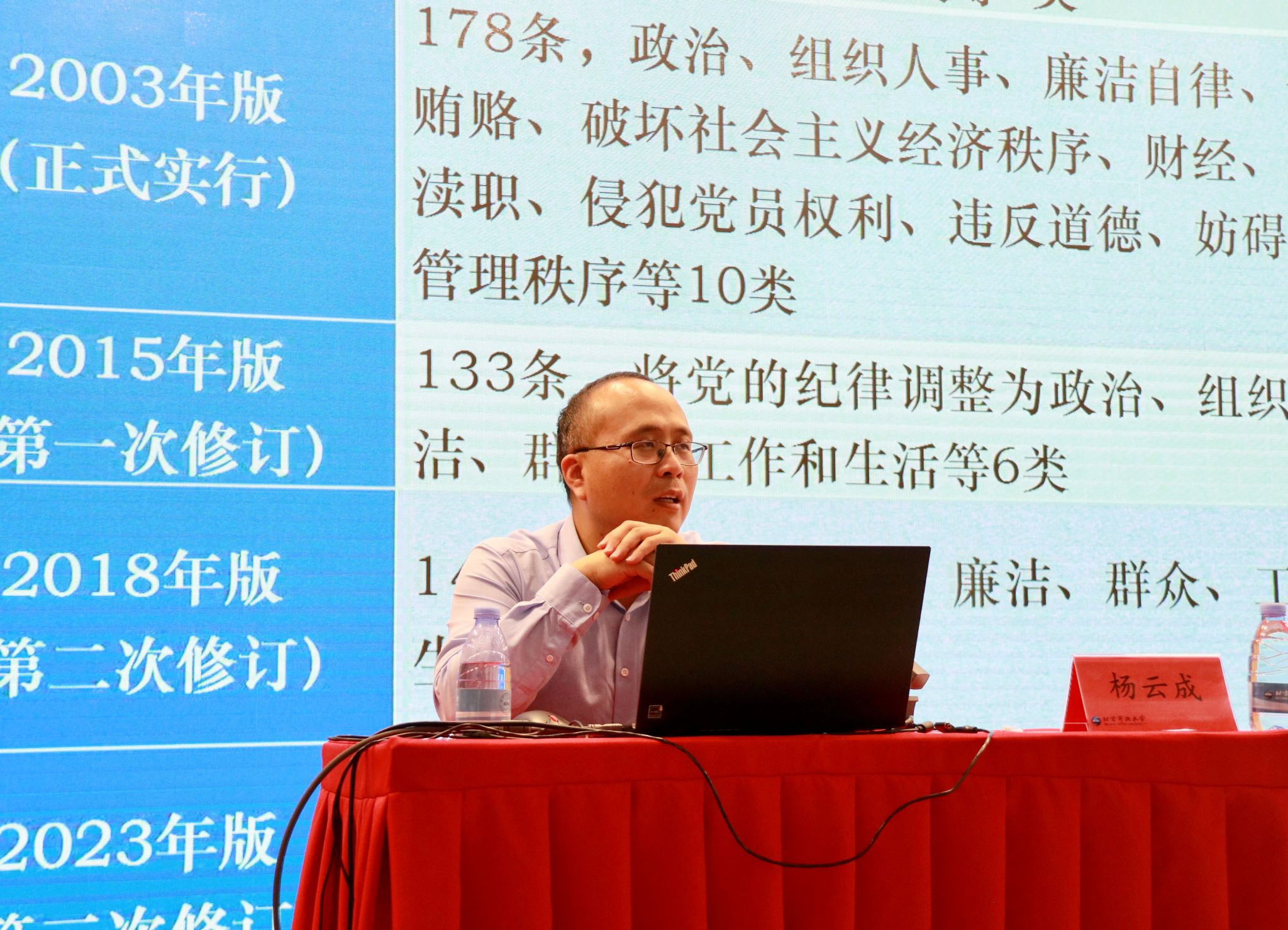 為深入學習貫徹《中國共產黨紀律處分條例》,推動黨紀學習教育走深走實,6月18日下午,我校舉辦黨紀學習教育專題輔導報告會,邀請中共北京市委黨校黨史黨建教研部副主任、教授楊云成對《條例》進行輔導解讀。學校黨委副書記殷文生主持會議,全校黨員參加報告會。