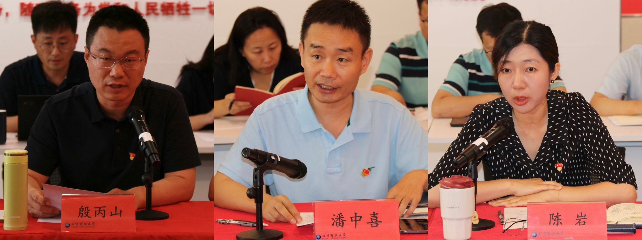 老年教育學院黨支部書記殷丙山、人文與教育學院黨支部書記潘中喜、城市管理學院黨支部書記陳巖分別就黨建研究、“標桿院系”“樣板支部”培育創建引領事業發展,進行交流發言。