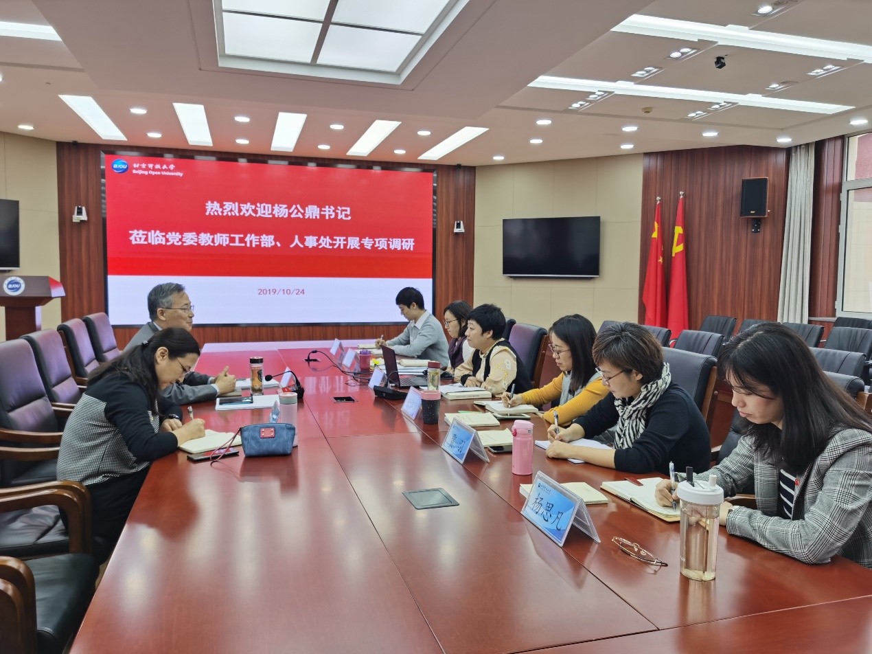 10月24日上午,黨委書記楊公鼎到黨委教師工作部、人事處開展“不忘初心、牢記使命”主題教育專題調研。本次調研主要聚焦于教師隊伍建設問題。