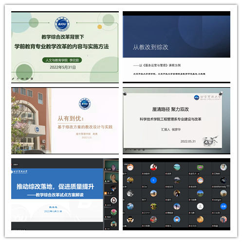 來自各學院和教務處的5位老師圍繞“綜改背景下如何做好教改項目”進行分享。人文與教育學院教師李欣茹做了題為“綜改背景下學前教育專業教學改革的內容與實施方法”的專題發言,她以學前教育專業為例,從學、教、考三個方面介紹了教學改革“一人一案”落實教師發言的主要舉措。商學院教師王曉霞做了題為“從綜改到教改——以《服務運營與管理》課程為例”的專題發言,通過立足開放大學教師系統化教學設計的工作全景,分享了自己教研的體會與思考。城市管理學院教師高茜做了題為“從有到優:基于綜改方案的教改設計與實踐”的專題發言,分享了學院層面如何做實教學改革的思考探索與舉措機制??茖W技術學院教師侯彥華做了題為“厘清路徑,聚力雙改——科學技術學院工程系專業建設與改革”的專題發言,她詳細闡述了綜改和教改過程中工科專業改革模式的創新思路與方法路徑。教務處副處長周暉做了題為“推動綜改落地,促進質量提升——教學綜合改革試點方案解讀”的專題發言,她結合學校教學綜合改革方案,立足學校現狀,解讀教學綜合改革試點方案內容及綜改和教改之間的關系。