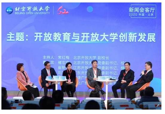 年會中的“新聞會客廳”環節,北京開放大學校長褚宏啟、江蘇開放大學校長崔新有、廣東開放大學校長劉文清、天津廣播電視大學校長張宗旺、河北廣播電視大學黨委書記籍獻平圍繞“開放教育與開放大學創新發展”這一主題,就如何加強內涵建設,不斷提升開放教育的辦學質量;開放教育的體系建設;如何實現開放教育與職成教育的融通融合,在融合中如何體現開放教育的特點,實現開放教育的創新發展;開放大學如何服務區域經濟發展等問題展開深度對話。
