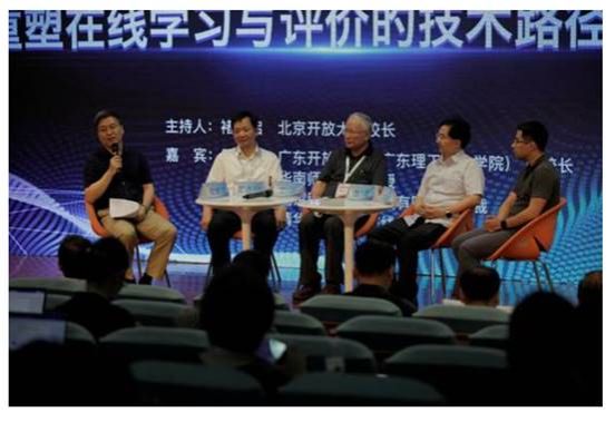由北京開放大學校長褚宏啟教授主持,廣東開放大學副校長瞿志印、華南師范大學丁新教授、北京網梯科技發展有限公司總裁張震、清華大學學堂在線首席運營官王帥國等嘉賓參與的新聞會客廳環節,圍繞技術對教育的沖擊、信息技術對人的素質提出怎樣的挑戰、技術對開放大學未來有何影響等三個問題展開對話、探討。