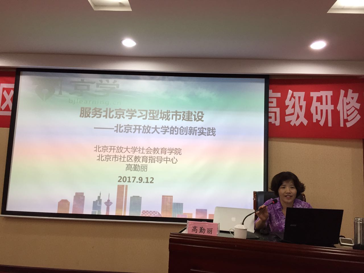 2017年9月11日-12日,我校社會教育學院院長高勤麗、研究部國兆亮博士和于舒洋博士3人赴河北邢臺參加了河北電大組織的全省社區教育管理人員高級研修班的交流。高勤麗就“服務北京學習型城市建設—... -