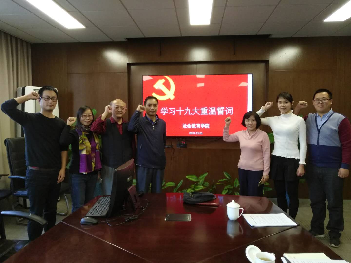 2017年11月1日下午,社會教育學院黨支部組織全院教職工專題學習“十九大”報告和和修訂后的《中國共產黨章程》。邵和平副校長參加學習,并就“十九大”報告的學習作了專題解讀。學習由對黨支部書... -
