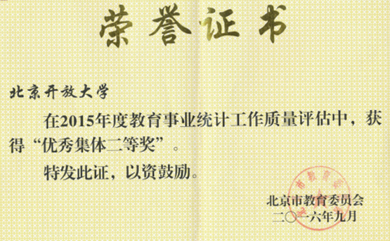 2016年6月,北京市教育委員會下發《關于公布2015年度教育事業統計工作優秀集體和優秀個人名單的通知》,學校榮獲北京?市教育事業統計工作優秀集體二等獎,黨政辦公室紀彥榮獲北京市教育事業統計...