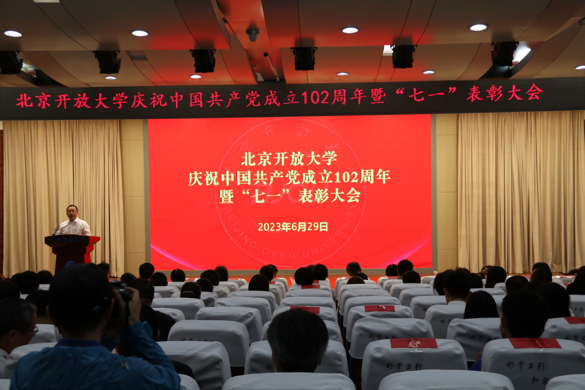 6月29日下午,北京開放大學召開慶祝中國共產黨成立102周年暨“七一”表彰大會,對學校優秀共產黨員、優秀黨務工作者、先進基層黨組織進行表彰,為光榮在黨50年老同志頒發紀念章,為課程思政教學... -